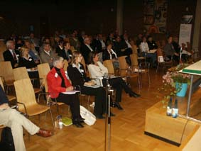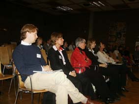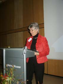 Britta Rundström, direktör, Svenska Kommunförbundet, för utbildning- samhälle och fastigheter, inledningstalade under rubriken "Gör porten bred och dörren hög!" "Hur lång tid tar det tills alla människor är ens klasskamrateter och alla i världen är ens lärare?" undrade Britta Rundström och menade att framtidsfrågorna handlar om flexibilitet och lärande i andra former än dagens. Det innebär stora förändringar för skolans "rumsliga" värld. |