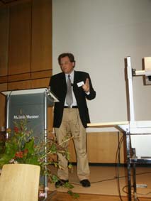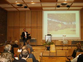 | Olle Sundh, lokalförsörjningschef, LIMA, Fastighetskontoret, Malmö stad var näste talare. "En modell för hyressättning av skollokaler " var ämnet och Olle Sundh valde att istället för marknadsvärde tala om "mest sannolik hyra" enligt Stellan Lundströms modell. Hyran skall spegla funktionen och läget menade Olle Sundh. Han ställde också frågan hur man ska övervintra skollokaler, som det dröjer 10-12 år innan de behövs på nytt. Att bygga nytt innebär dubbelt så hög hyra, sa Olle Sundh och betvivlade att det fanns resurser för det i vart fall i Malmö. | ![]() |