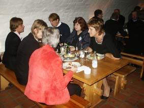 | Så var det dags för gemensam lunch,. Borgstugan vid Malmöhus slott väntade med mat från Restaurang Vega och många lät sig väl smaka och njuta av den korta men vackra höstpromenaden. | ![]() |
